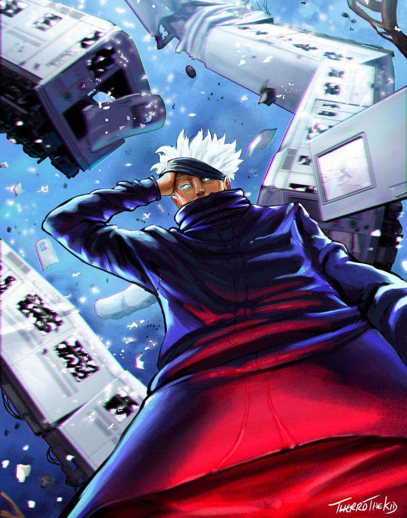 11 x 14 print of Saturou Gojo from Jujutsu Kaisen on heavy card stock cream cotton paper. Print is shipped in a protective polybag mailer.